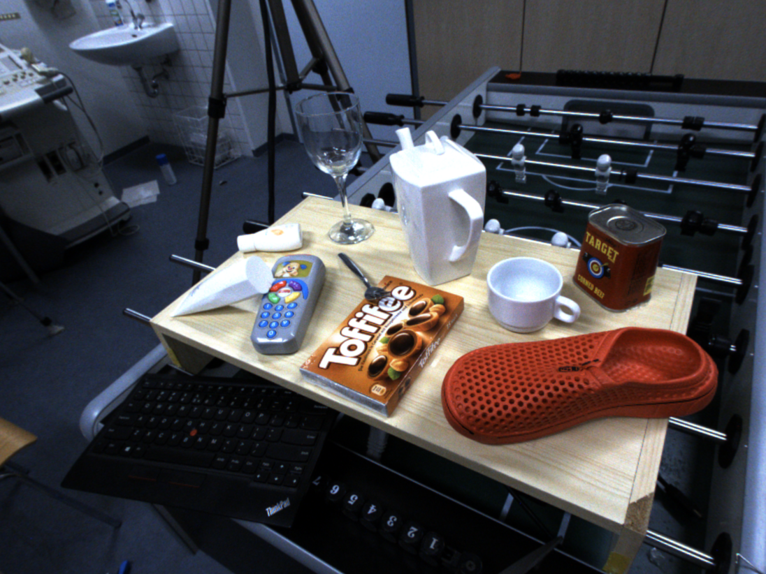 AlignPose is a multi-view 6D object pose estimation method. It accepts a set of RGB images captured from multiple viewpoints with known camera poses and a set of 3D object models as input. Its primary goal is to estimate the 6D poses of all object instances within the scene. The approach consists of three steps: first, it extracts single-view pose candidates from all viewpoints using a single-view estimator. These candidates are then aggregated into a common coordinate system, where non-maximum suppression (NMS) removes redundancies. Finally, a novel multi-view feature-metric refinement is applied to ensure the resulting poses are consistent across all views.